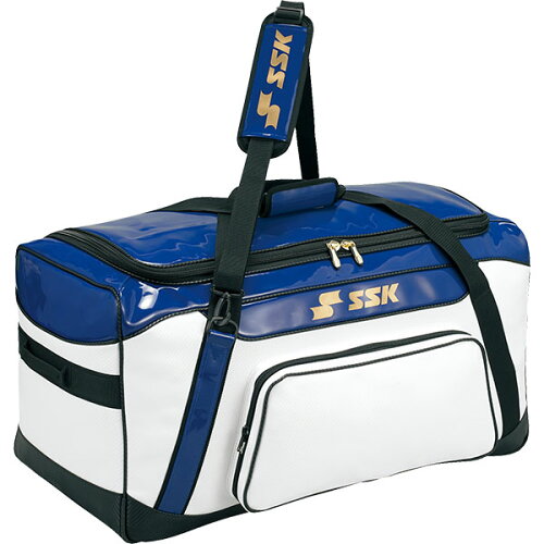 刺繍をご希望のお客様はコチラ ■カラー ホワイト×レッド(1020) ホワイト×Dブルー(1063) ホワイト×ネイビー(1070) ■サイズ 長さ78×高さ40×幅36cm ■容量 約125リットル ■素材 合成皮革(PVC)×合成皮革(PVCエナメル加工) ■原産国 中国、ベトナム ●前ポケット着脱式(縦19×横32cm) ●両耳ヘルメット8個収納可能 ●キャッチャーズギア2セット収納可能(捕手用ヘルメット含む) 【注意事項】 ご注文後のキャンセル・返品・交換はお受けできかねます。