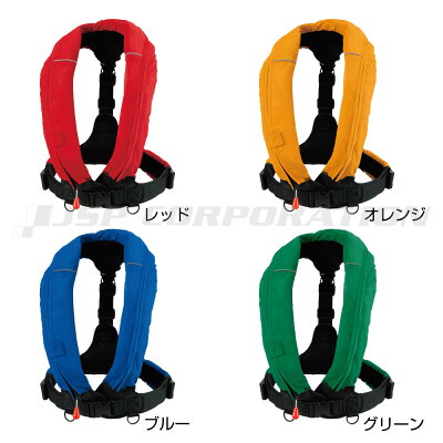 ■カラー:レッド、ブルー、グリーン、レッド ■作業用救命衣(小型船舶兼用) ■型式承認番号:第5013号 ■サイズ:胸囲140cmまで、適応体重100kgまで ■浮力:10.8kgf ■胴衣の分類:TYPE A ■ボンベ1本標準装備 ●汚れたカバーを外して洗えるウォッシャブル仕様 ●新仕様クイックバースト方式を採用 <自動膨張式タイプの特徴> ●水を感知し自動で膨張するタイプ ●ヒモを引いて手動で膨張させることも可能 ●コンパクトで着易さ良好 ●保管時の収納バック、ホイッスル付き ●ライフジャケット本体の回りに反射テープを装備 ●膨張後に十分な浮力が得られない場合は、エアーの補充が可能 ●ボンベ&スプールを取り替えることで、再使用可能 ●釣りを目的としたご使用にもおすすめです。