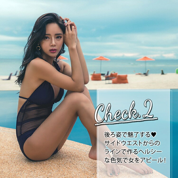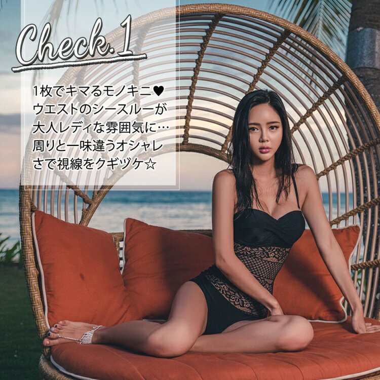 Check.1 1枚でキマるモノキニ♥ ウエストのシースルーが大人レディな雰囲気に… 周りと一味違うオシャレさで視線をクギヅケ☆
